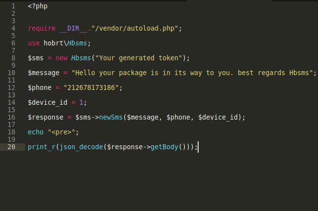 We have a full package that you can use if you work with php for documentation visit https://github.com/hobrt-programming/hbsms-library.
