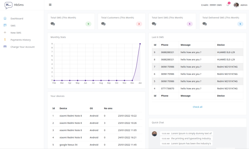 You can see full report about SMS you send and delivered SMS and Faild ones .